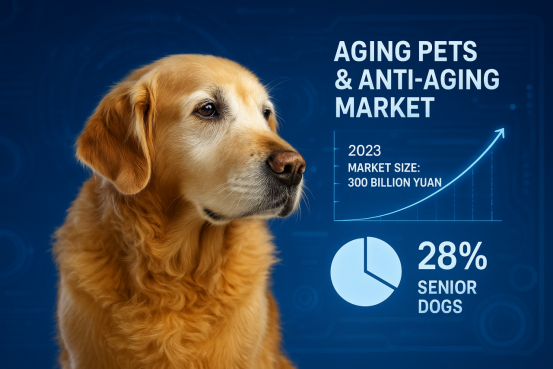 中国宠物行业发展迅猛,2023年市场规模达3000亿元(约42亿美元),年增长率7.5%。伴随宠物群体老龄化,约28%的犬只进入7岁以上老年期,直接