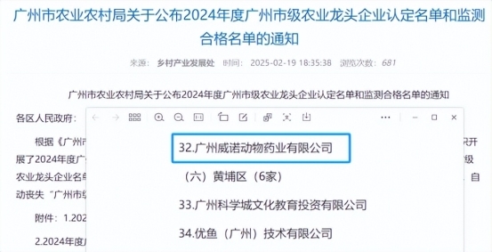 广州威诺动物药业有限公司荣获“广州市级农业龙头企业”称号砥砺前行助力国产宠物大健