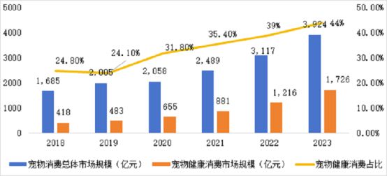 随着近年来我国养宠人士不断增加、宠物消费市场规模持续增长,宠主对宠物食品支出、健康消费支出金额也在持续上升。宠物肠胃健康粮属于宠物主粮的范畴,是一种